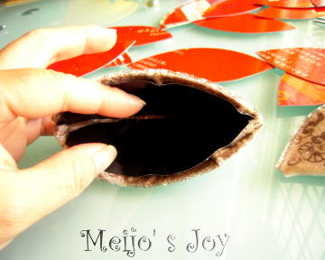 Обратную сторону я заклеила кусочками грубой ткани, которая по размеру должна быть чуточку меньше картона.